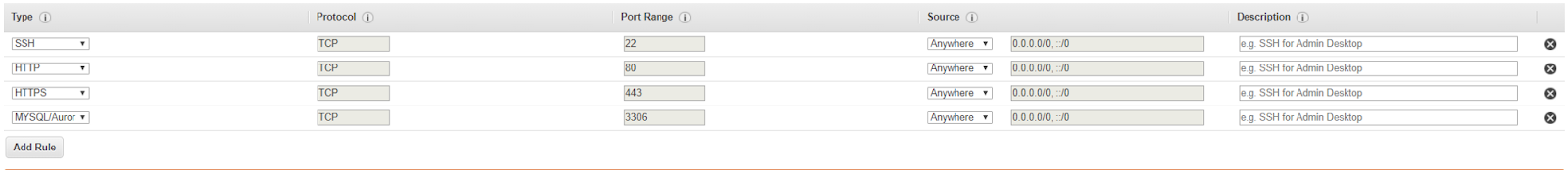 again “Anywhere” under the source column. After that, select Add Rule