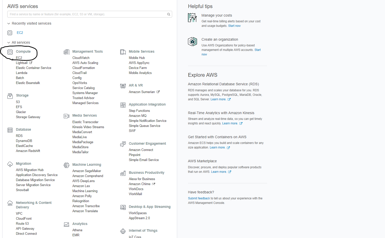 under the Compute heading.
