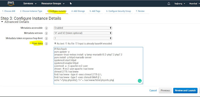 Install LAMP Server using the EC2 User Data Script